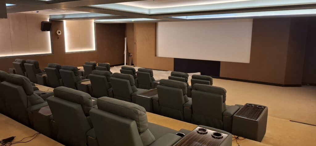 The seating and space arrangement were crafted to offer the best viewing angles and relaxation.